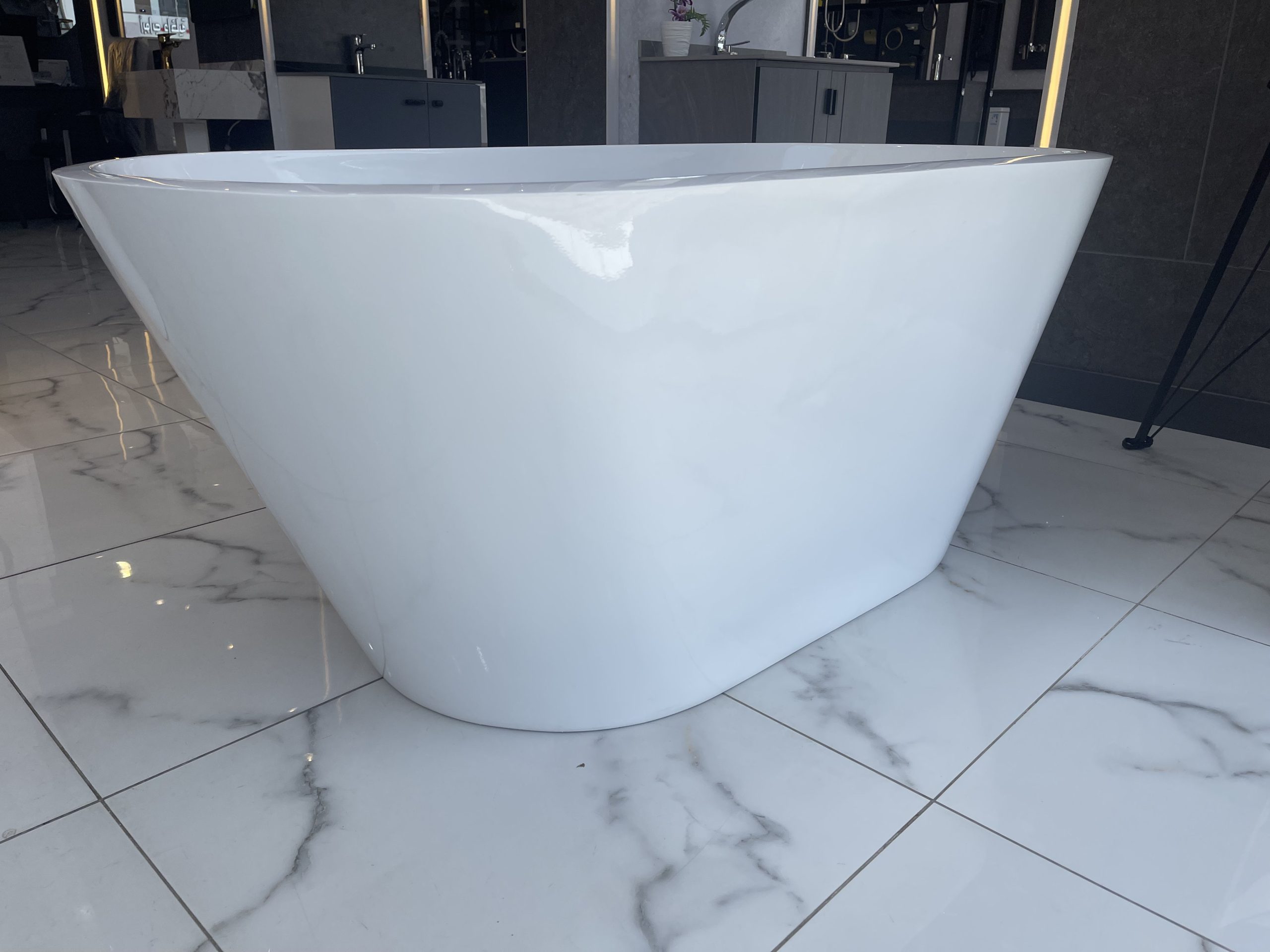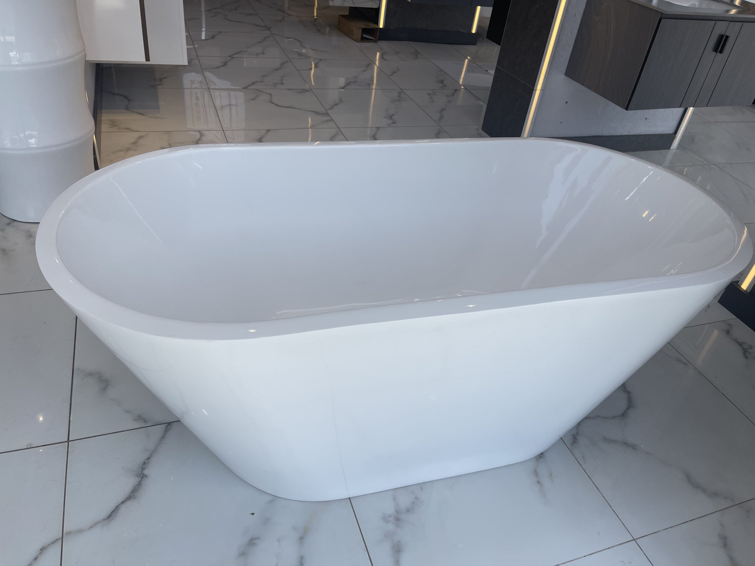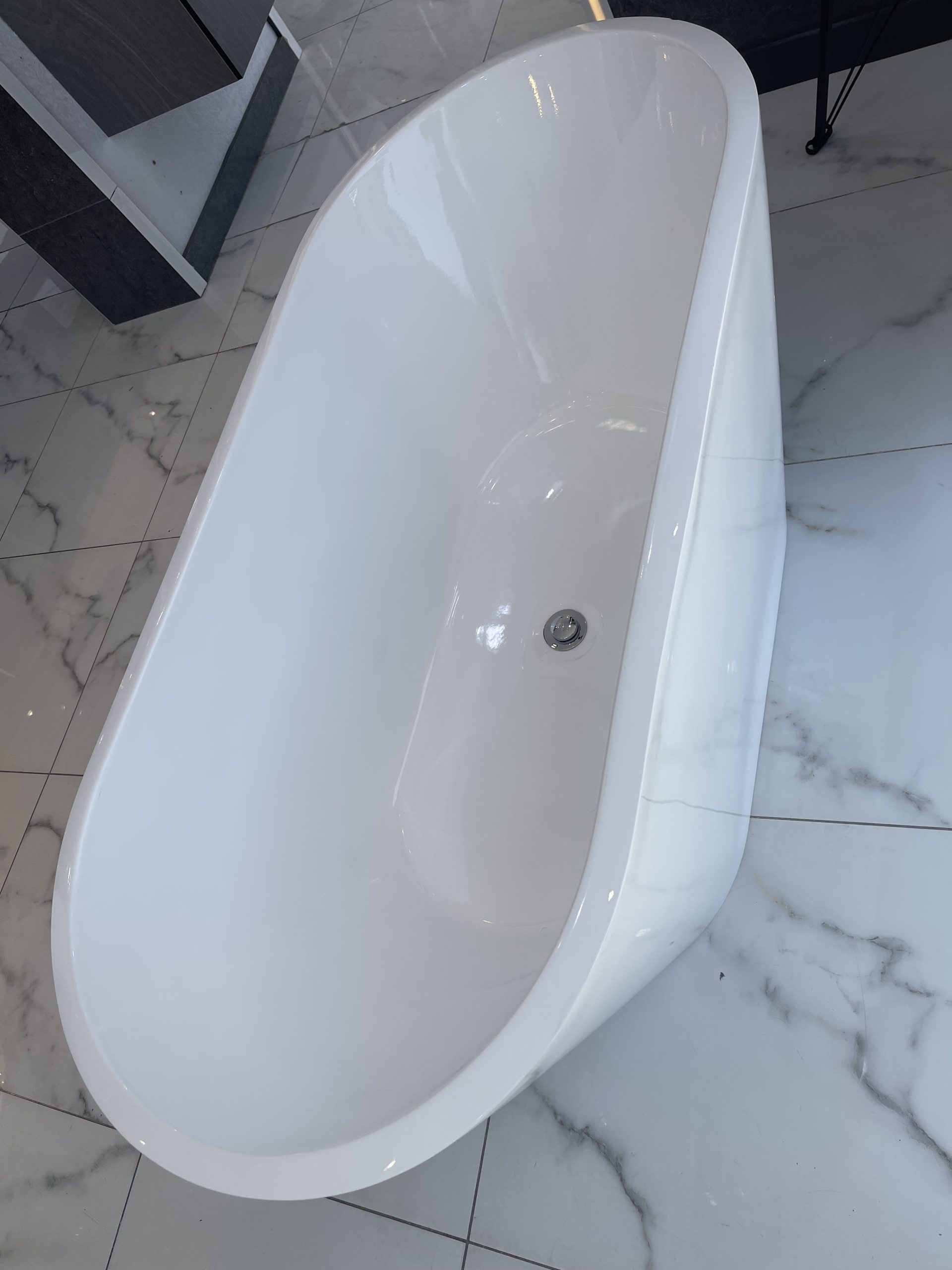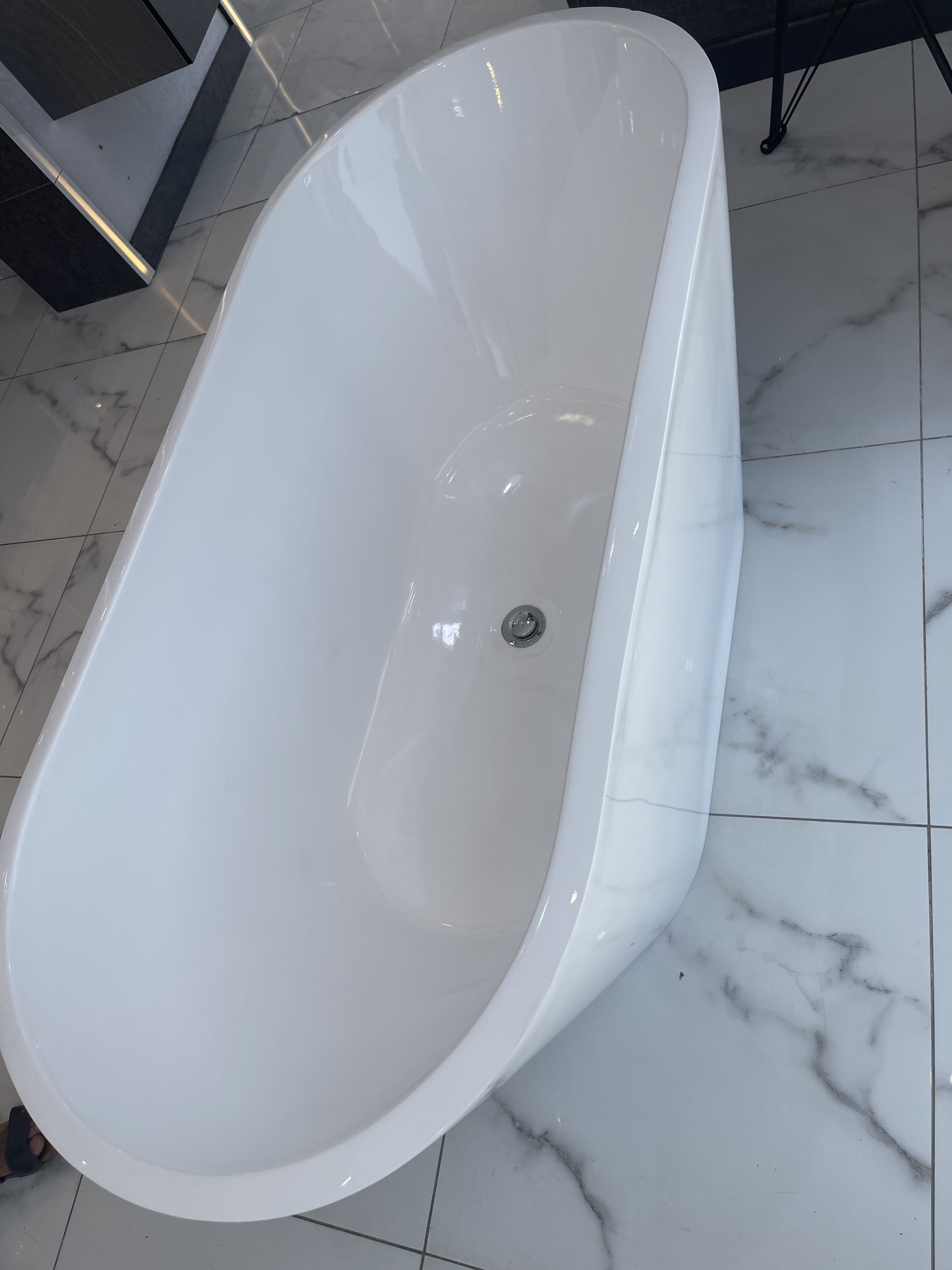 بانيو اكريلك بيضاوي مع قواعد كروم – ضمان على اللمعة واللون 150 * 70 سم
