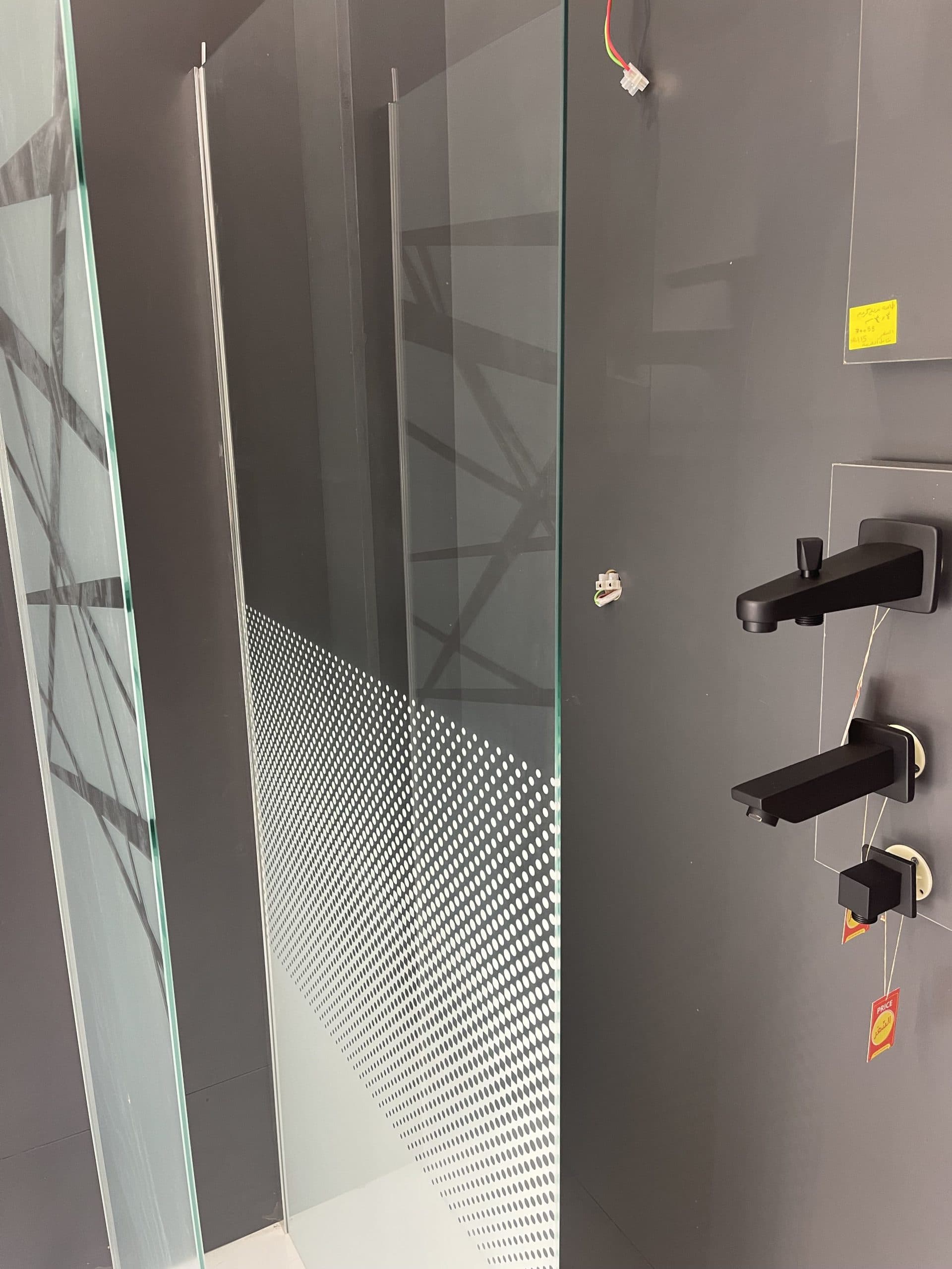 حاجز زجاجي 6 مم سيكريت ابيض او اسود (فريم كروم+ زراع تثبيت كروم) صد الصدأ 90 سم * 195 سم