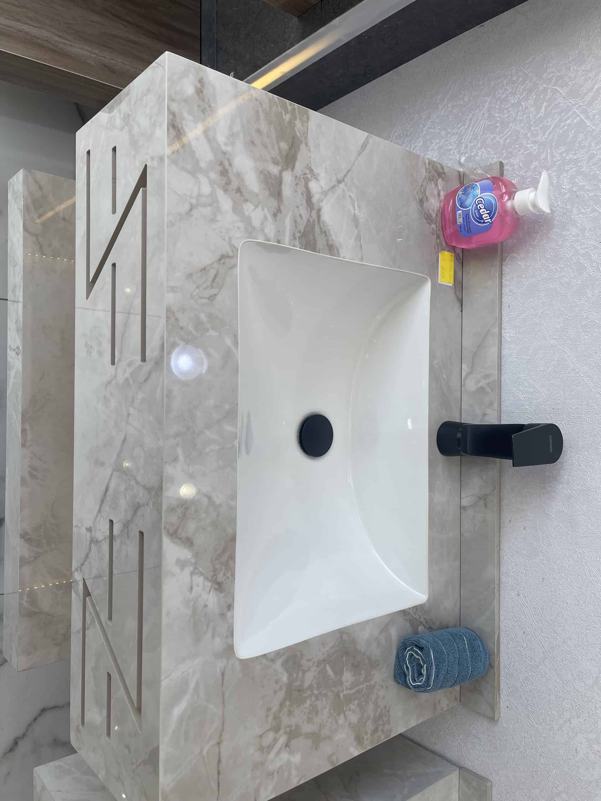 مغسلة بورسلان ضد الخدش والامتصاص – حوض واحد – سهل التنظيف – 80*50سم – ديكور كلاسيك – حوض ليزر