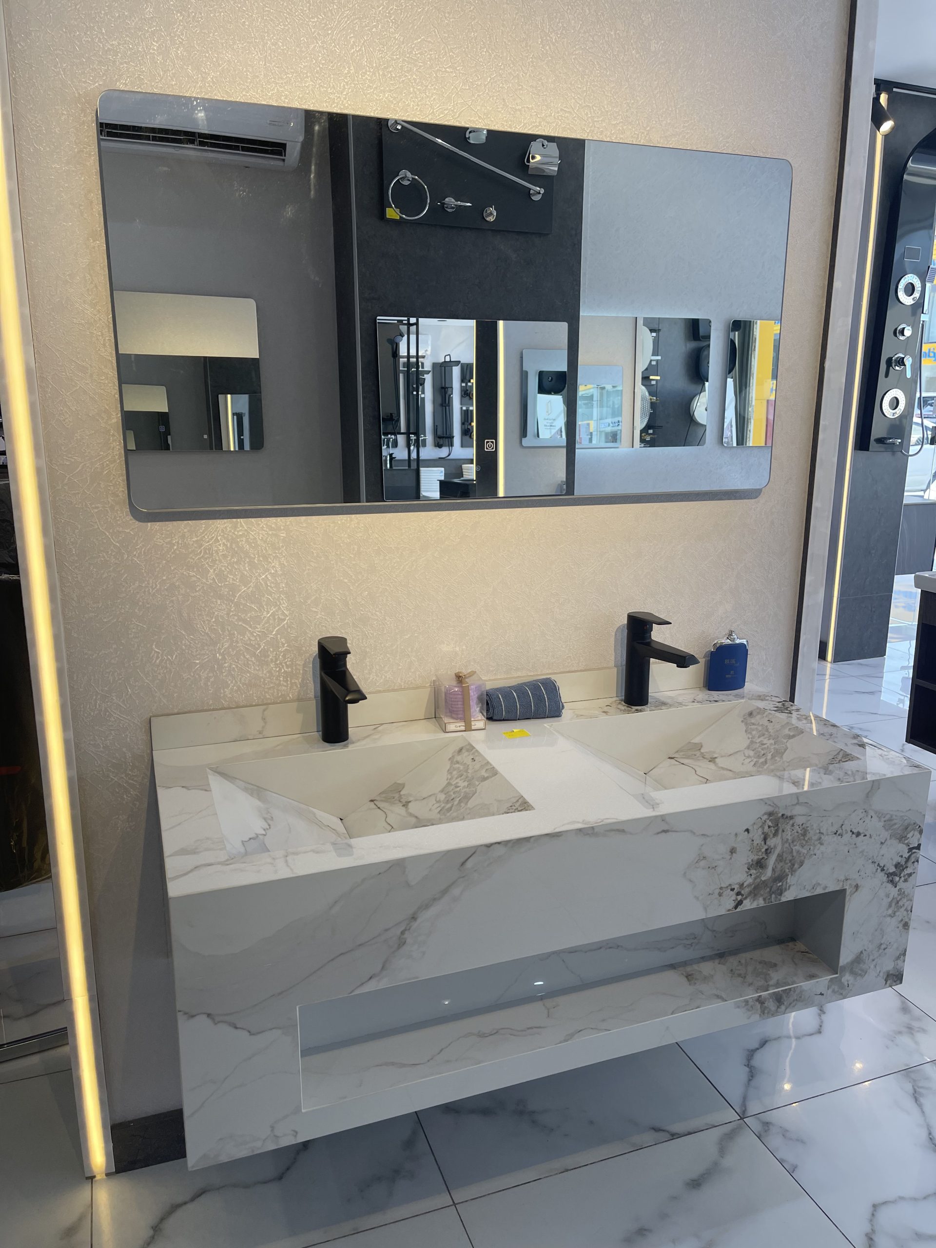 مغسلة بورسلان 3 حوض مقاس 2متر لون ابيض